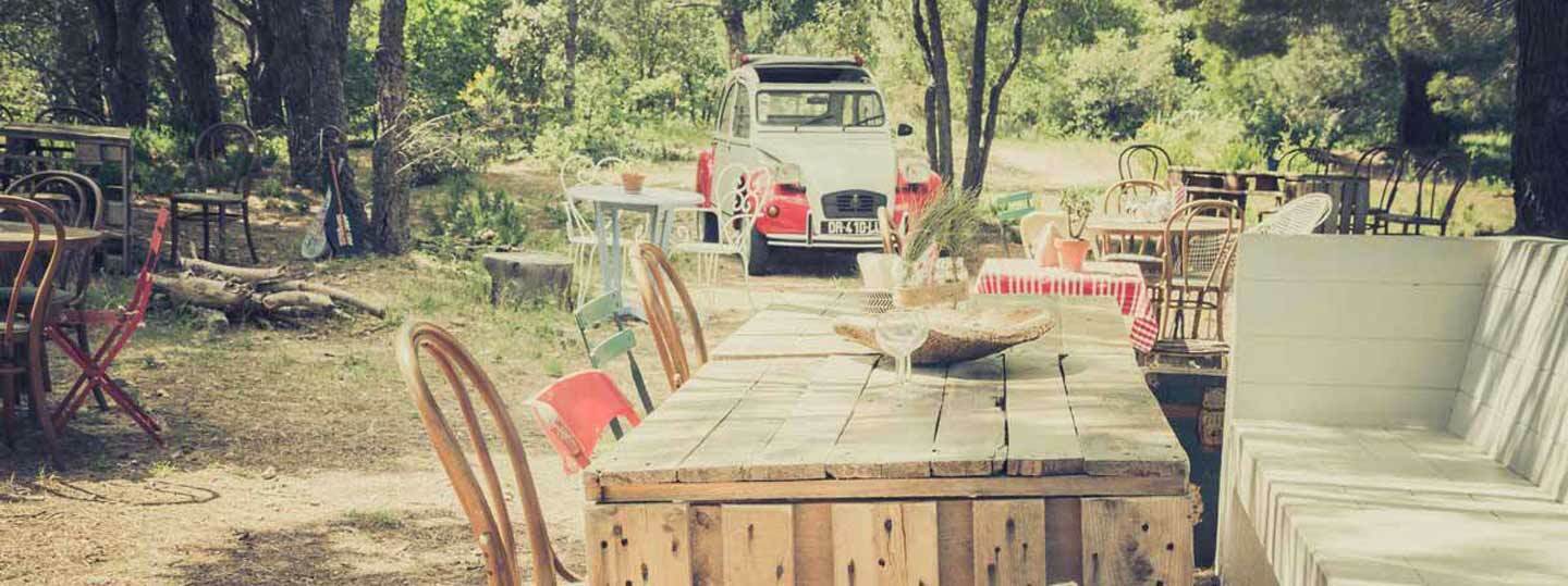 Dans une logique de préservation de la nature et de la biodiversité, nous n'avons rien modifié sur la propriété, le restaurant s'accorde en harmonie avec la nature. Les arbres, la végétation, les éléments naturels font partie intégrante de l'identité du restaurant. La nature est au cœur du projet.