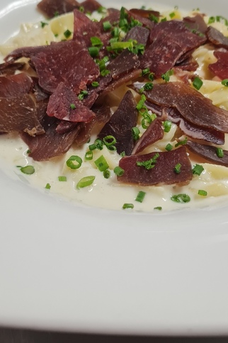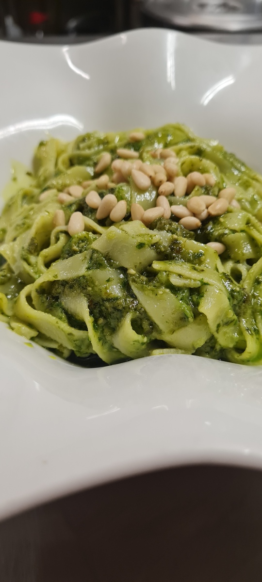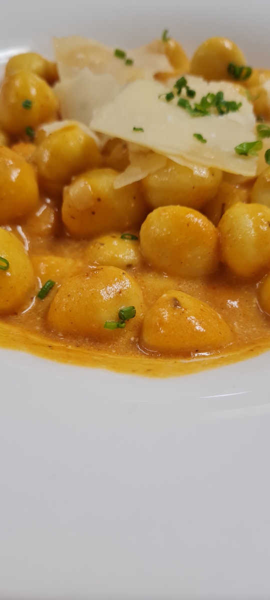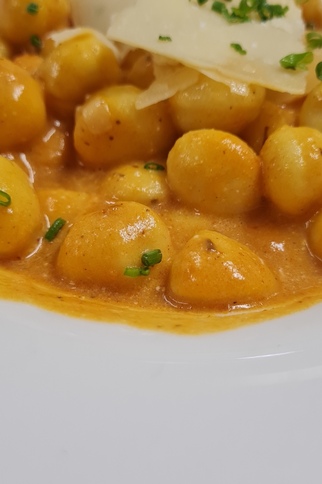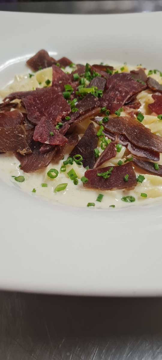 Tagliatelles et gnocchis maison, soupe de poissons, pissaladière, terrine de chair de crabe, entrecôtes et filets de bœuf, escalope de veau milanaise, desserts maison.Tous les jours sont proposés une entrée du jour et un plat du jour avec des formules déjeuner.