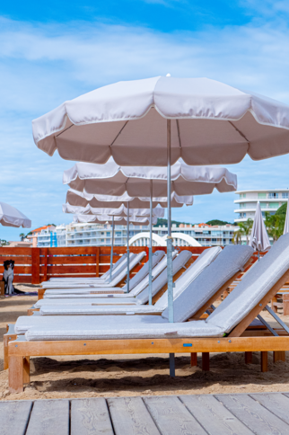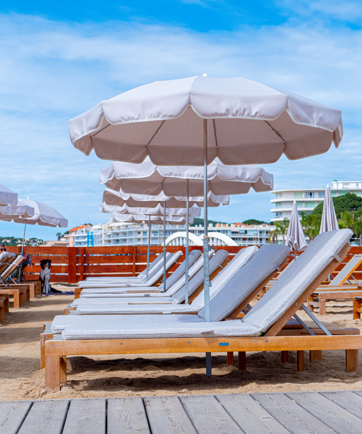 A l'arrivée de l'été, profitez de notre plage : installez-vous confortablement sur nos transats et laissez-vous porter par le rythme des vagues. Entre baignade, farniente et cocktails en bord de mer, profitez d'une expérience unique à Sainte-Maxime.