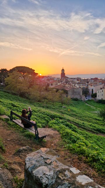 - 12. A Saint-Tropez, place à la simplicité pour admirer le célèbre clocher et son village de pêcheur, sans oublier la mer et le massif des Maures, qui font partie intégrante de la carte postale, en vous asseyant sur un banc de l’avenue Antoine de Saint-Exupéry en contre-bas de la Citadelle.
